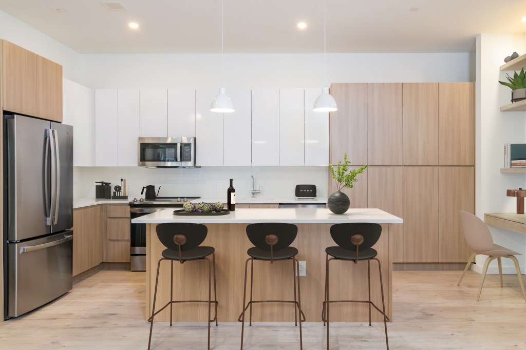 With select loft homes offering 13’ ceiling heights to homes with oversized windows maximizing natural light, and with many providing balconies or expansive terraces, the spacious homes at The Wyldes will allow residents to spread out and enjoy their surroundings while fully embracing the benefits of indoor-outdoor living. Modern finishes and appointments include luxury plank flooring, in-home washer/dryers, integrated millwork home office nooks and floating shelving in most homes, and kitchens with stainless steel appliances, designer cabinetry and quartz countertops.