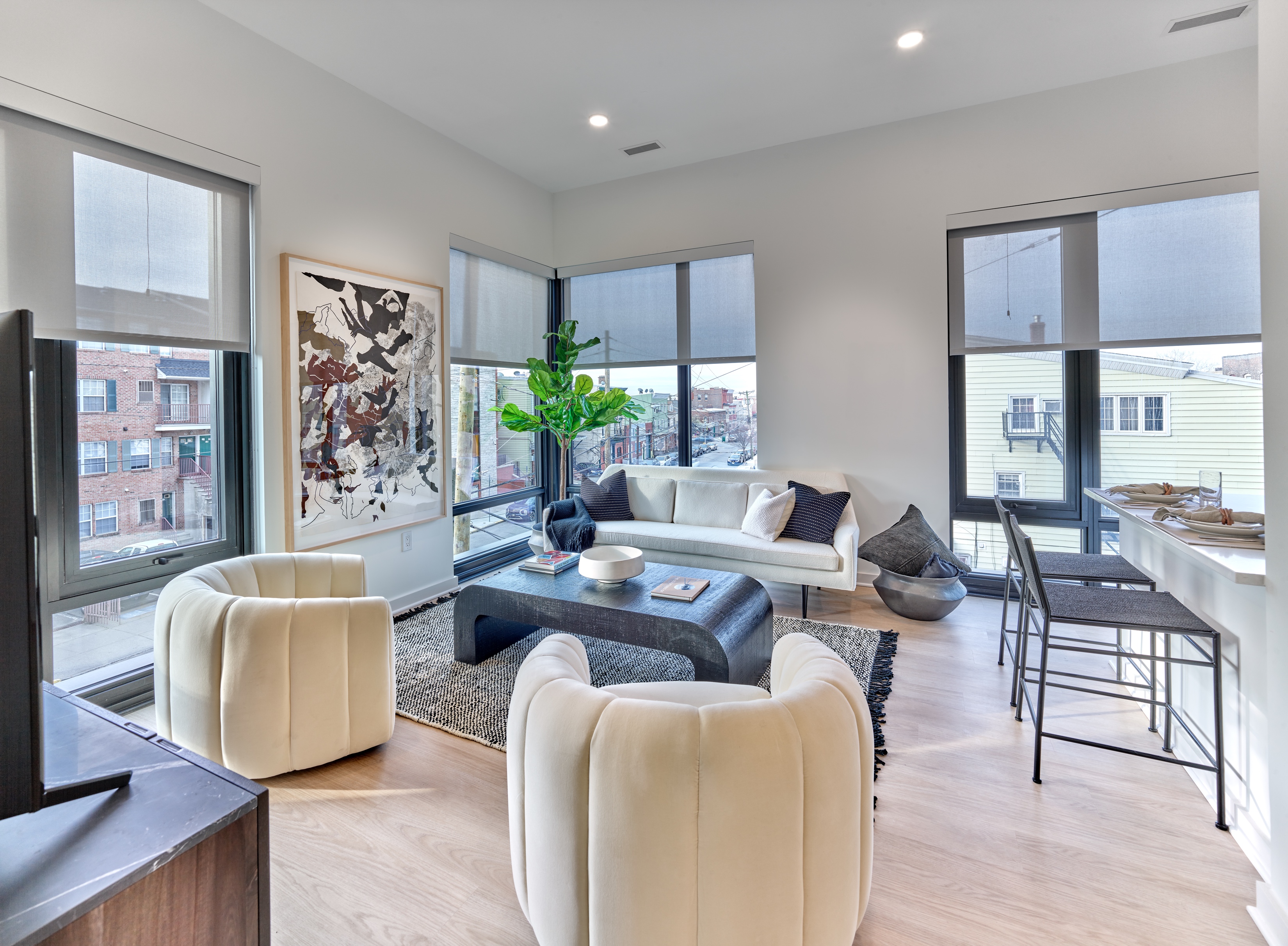 Fifty-Five Union also takes a forward-thinking approach to sustainability and wellness, contributing to a greener future for Newark. Notable green features include a cutting-edge greywater recycling system, a living green wall in the lobby, a green roof system, EV charging stations, a regenerative power elevator system, LED lighting throughout the property, and hybrid heat pumps and Energy Star®-rated appliances in every residence.