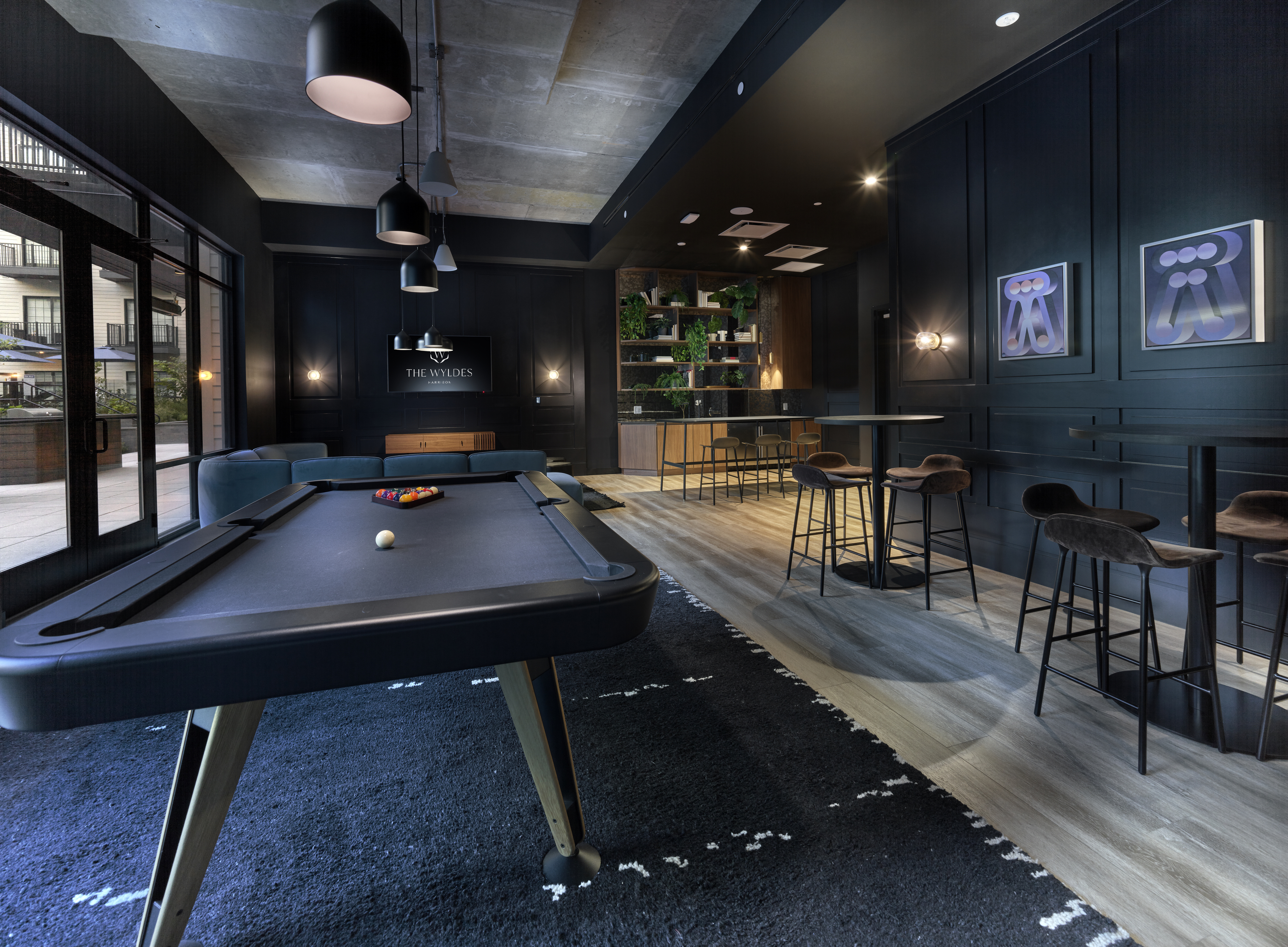 The Wyldes offers an impressive 45,000 square feet of outdoor green space. Amenities include multiple landscaped courtyards featuring a resort-style infinity-edge pool, sun deck, firepits, a bar with TVs, barbecues, outdoor dining areas, games and a screening area.