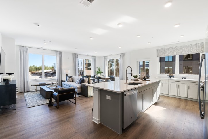 Finishes and features include soaring 9 to 10-foot ceilings, oversized windows, modern plank flooring, stainless-steel appliances, and shaker cabinetry accented by quartz countertops. Plus, Stonehill offers all the at-home upgrades to keep its residents’ lives organized and clutter-free: abundant linen and pantry storage, generous walk-in closets outfitted with custom modular shelving, oversized washer/dryers, built-in desks, wine refrigerators, and more.